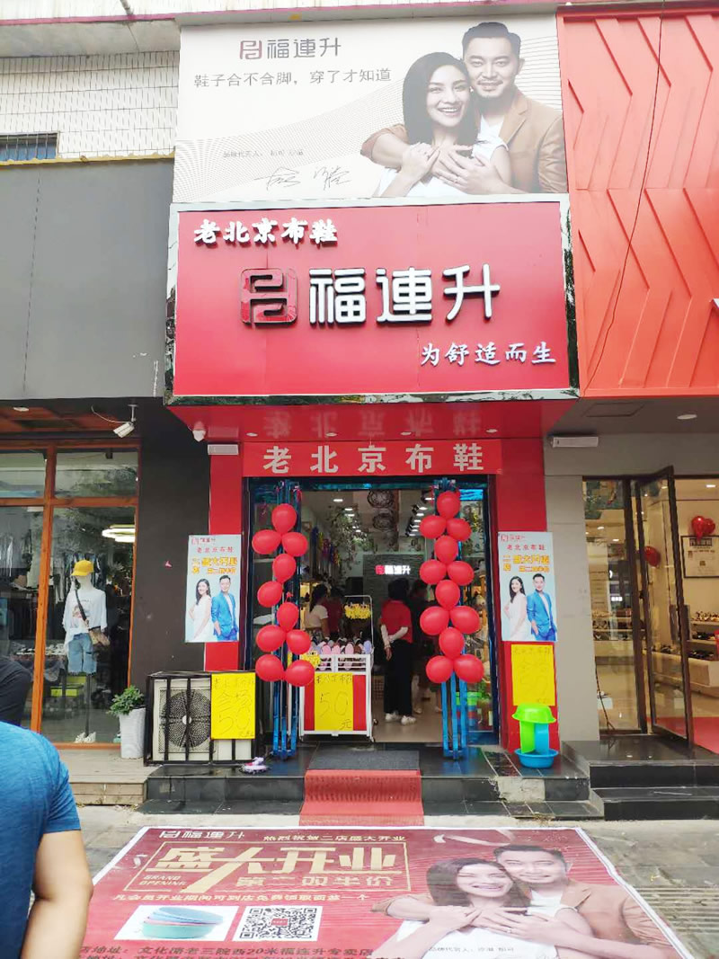 在此,福連升健康休閑中年鞋(原福連升(原福聯(lián)升)老北京布鞋)全體員工祝賀:福連升中年鞋河南尉氏文化路二店開業(yè)大吉、生意紅火、財源廣進(jìn)!誠邀各地有志之士加盟合作,共享輝煌!